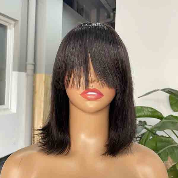 Ubierz i przejdź do krótkich peruk Bob Fringe ludzkie włosy